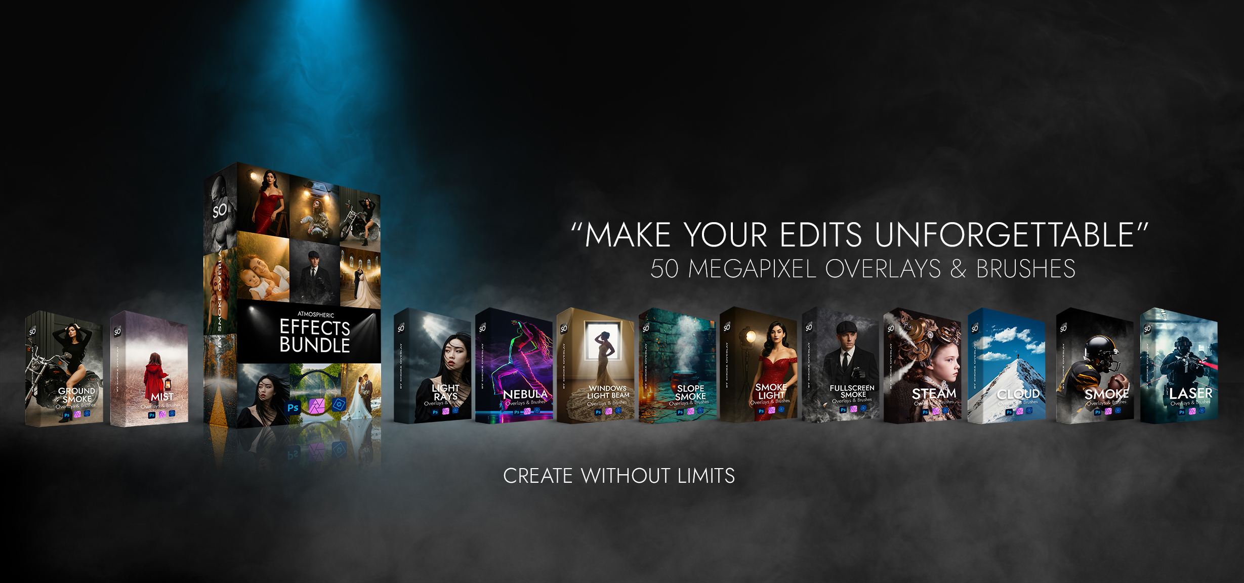 • 426 OVERLAYS (JPG & PNG): each in 50-megapixel resolution, built to grab attention, enhance atmosphere, and dramatic depth.